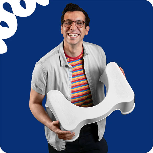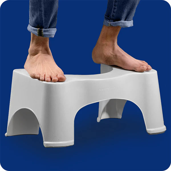 Just gotta go? We feel you. This 7β toilet stool is ready to support your feet and legs while you poop. It repositions your body to make pooping easier. There are no nuts, bolts or difficult instructions involved since it is one piece. Just slide it under the toilet bowl, have a seat, position your feet, then go!