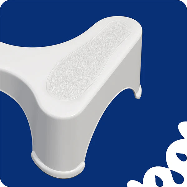 Our easy-to-clean toilet stool with foot grips is designed for squatting when you poop. It is not to be used as a step. The idea is to reduce strain and put your body in a natural squat position to unkink your colon. This toilet stool is ready to withstand daily use. Are you ready to shorten bathroom visits with a squat?